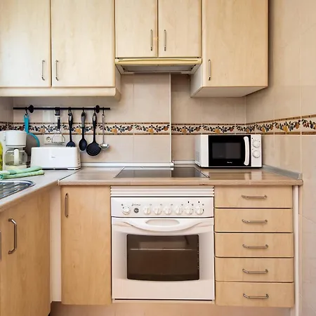 Offering a terrace with a swimming pool, the spacious 65 m^2 Beach Holiday Denia is located on the beachfront. The 1-bedroom apartment has a beachfront location a mere 5 minutes' stroll from Playa Les Marines.